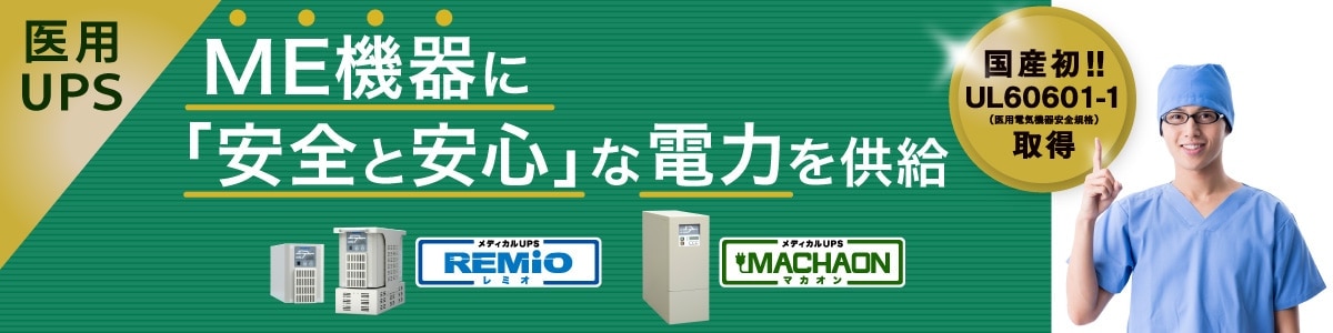 容量に応じて『REMiO(レミオ)』と『MACHAON(マカオン)』から選べる、医療機器専用のUPS「医用UPS」。
