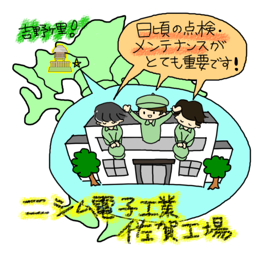 定期的な目視点検、清掃、部品交換等をしっかりとお願い致します!(佐賀県吉野ヶ里にある、ニシムの工場より)