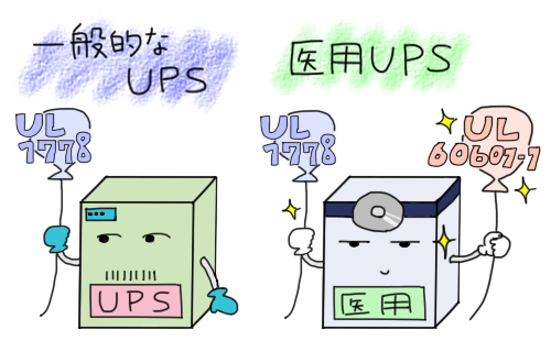 医療機器での利用を目的としたUPSの規格は、「UL1778」と「UL60601-1」があるそうです。